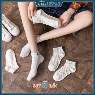 Tất vớ cổ ngắn họa tiết dễ thương set 5 đôi,vớ nữ chất liệu cotton co giãn 4 chiều - Ekiu Shop