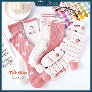 Tất vớ cổ cao nữ họa tiết dễ thương, chất liệu cotton thoáng khí - Ekiu Shop