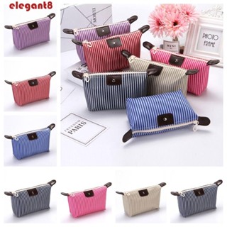 ELEGANT Túi Đựng Mỹ Phẩm Đa Năng Chống Thấm Nước Họa Tiết Kẻ Sọc / Trái Tim Xinh Xắn Cho Nữ