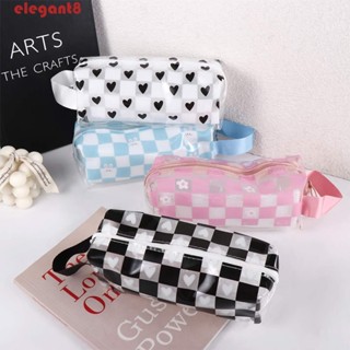 Túi Đựng Bút Chống Thấm Nước Sức Chứa Lớn Có Khóa Kéo Họa Tiết Sọc Caro Phong Cách Hàn Quốc