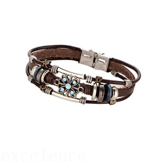 Vòng tay dây da nhiều lớp phối mặt hoa phong cách bohemian