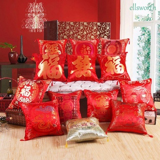 Vỏ Gối Thêu Họa Tiết Phối Núm Tua Đẹp Mắt Dùng Trang Trí Nhà Cửa/ Văn Phòng/ Tiệc Cưới