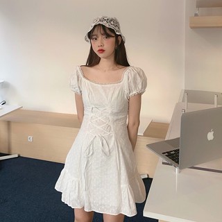 Đầm trắng nữ Emilyshop dáng xòe tay ngắn midi