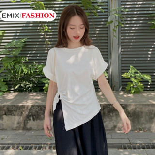 Áo thun nữ tay lật cách điệu EMIX, bó eo, cộc tay, dưới 60kg chất thun Hàn, phong cách năng động, đi chơi, mặc nhà 178