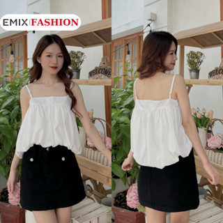 Áo 2 dây dáng su EMIX, freesize dưới 54kg, dáng phồng, cúp ngực, chất thô boil, phong cách Hàn Quốc d136