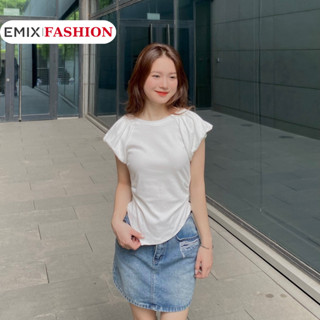 Áo thun cộc tay bồng nhún eo EMIX, chất zip mát lạnh, freesize dưới 55kg, phong cách basic hàn quốc 187