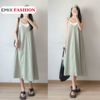 Váy 2 dây xếp ly eo EMIX, đầm 2s chữ A dáng dài, phong cách Hàn Quốc chất 2 da mềm mát 3393_P0K7
