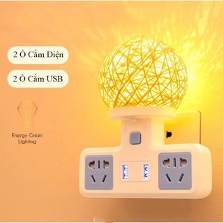 Ổ Cắm Điện Đa Năng - Đèn Ngủ Cầu Mây Energy Green Lighting - 2 Cổng USB , Ổ Chịu Tải 2500W, Chống Cháy Nổ