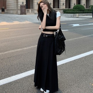 Chân Váy ulzzang Dáng Dài Xếp Ly 2 Thắt Lưng Chất Cotton Cao Cấp Ko Kèm Đai CV40