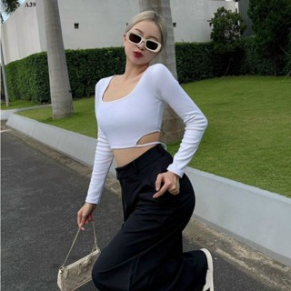 Áo tay dài Khoét eo croptop thun gân tăm CT-E01
