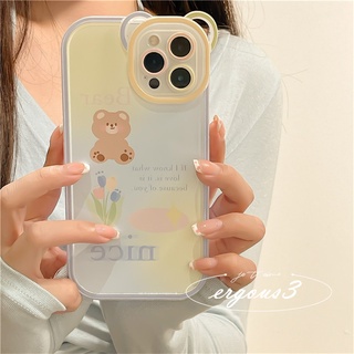 Ốp Điện Thoại Mềm Họa Tiết Hoa Tulip Gấu Bảo Vệ Lens Cho iPhone 14 13 12 11 Pro Max SE2020 X XR Xs Max 7 8 6 6s Plus