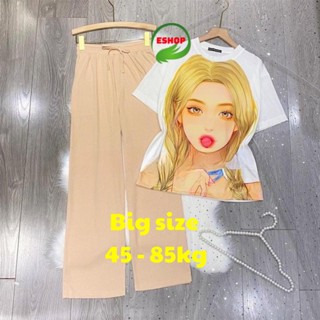Đồ bộ đồ mặc nhà nữ bigsize 45 -85kg Đồ bộ nữ cotton co giãn ESHOP DB11 thể thao Sét bộ thun nữ đẹp mùa hè quần dài