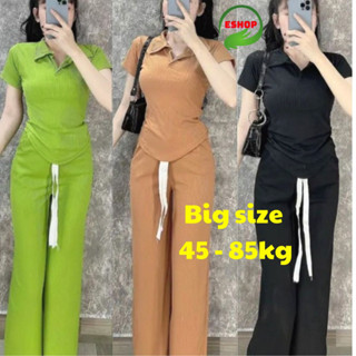 Đồ Bộ Nữ Quần Ống Rộng Bigsize Vải Thun Gân Tăm Thái Mịn Mát Áo Tay Lỡ Vạ Bầu Cổ Polo Set Đồ Nữ Đẹp Sang Chảnh ESHOP TT8