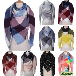 Espo Khăn Choàng Cổ Bằng Vải Cashmere Họa Tiết Kẻ Ô Tam Giác Sang Trọng Thời Trang Thu Đông Cho Nữ
