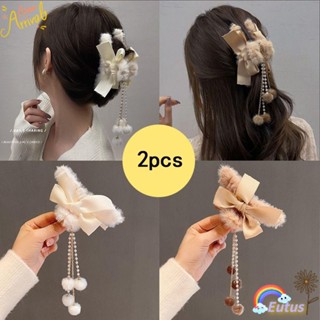 Set 2 Kẹp Tóc Càng Cua Đính Nơ Giả Bằng Lông Nhung Thanh Lịch Cho Nữ