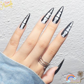 Set 24 Móng Tay Giả Dạng Nhấn Màu Tối|Giày Cao Gót Kiểu Móng Vuốt Dài Che Phủ Toàn Diện Phong Cách Retro