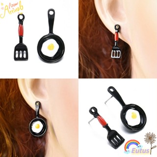1 Đôi Bông Tai Hình Trứng Chiên Thiết Kế Bất Đối Xứng Dễ Thương