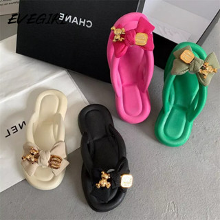 Evegirl Giày Sandal Xỏ Ngón Đế Dày Đính Nơ Phong Cách Ngọt Ngào Thời Trang Đi Biển Mùa Hè
