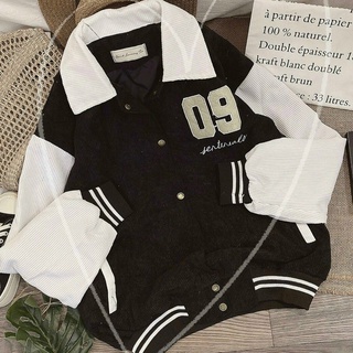 Áo khoác Bomber Jacket Nhung 2 lớp hình thêu chữ 09 unisex nam nữ (Ảnh thật/Có sẵn)