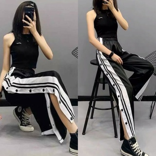 FREESHIP 50K - Quần Thun Ống Rộng Chạy Viền Xẻ Tà Nút Bấm