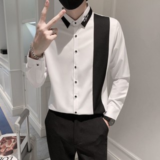 Bán Chạy!F & X Áo Sơ Mi Nam Tay Dài Cao Cấp Màu Trắng Đen Khóa Cài Cổ Nhỏ Độc Đáo Phong Cách Đường Phố Mùa Xuân Thu
