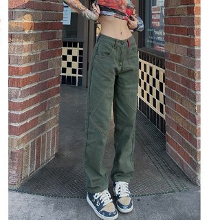 F & X Quần Jean calca feminina Màu Xanh Lá Olive Dáng Suông Phong Cách Âu Mỹ Retro Đường Phố Mới Hợp Thời Trang Mùa Hè Cho Nữ