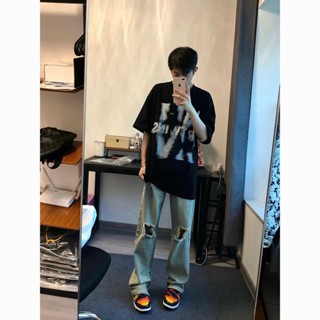 Áo Thun 100% Cotton Tay Lỡ Dáng Rộng Phong Cách Thời Trang Đường Phố Mỹ Cho Nam Giới
