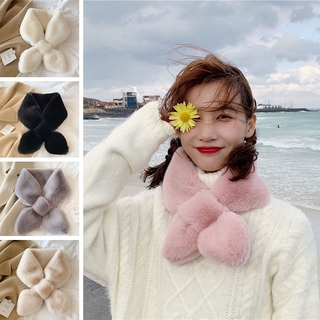 Khăn quàng cổ thắt chéo vải lông ấm áp cho nữ