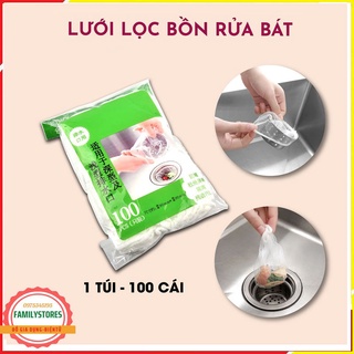 Túi Lọc Rác Bồn Rửa Chén Bát Dạng Lưới Siêu Dai Đầu Có Chun Co Giãn Chống Tắc Nghẽn Ống Sét 100 Túi Lưới Lọc Rác