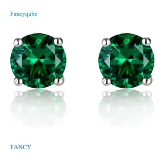 Đôi Khuyên Tai Hình Tròn Bằng Bạc 925 Đính Đá Zircon Xanh Lá Sang Trọng