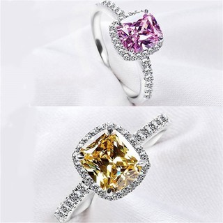 Nhẫn Đính Hôn Mạ Bạc Đính Đá Zircon Vuông Sang Trọng Thời Trang