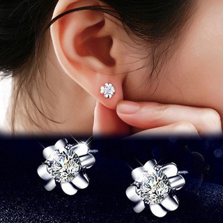 Hoa tai mạ bạc hình hoa đính đá sang trọng