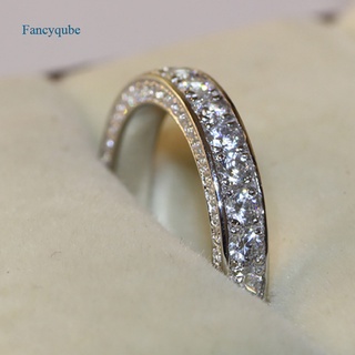 FANCYQUBE Nhẫn Tay Mạ Vàng Mặt Chữ V Đính Đá Pha Lê