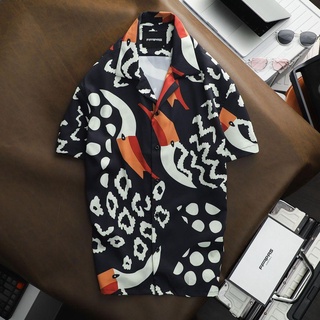 Áo Sơ Mi Tay Ngắn June Họa Tiết Hình Vẹt Trừu Tượng Chất Vải Chun Chéo Mềm Mát Form Relaxed - FAPAS