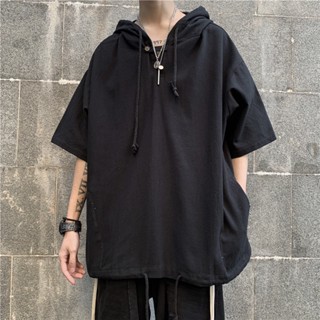 Áo Hoodie Tay Ngắn Dáng Rộng Phong Cách Thời Trang Harajuku Cho Nam Giới