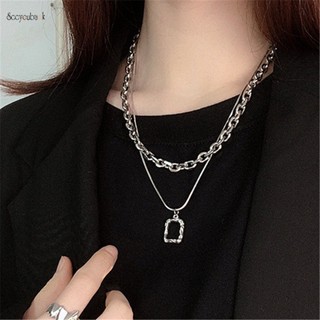Set 2 Vòng Cổ Hai Lớp Mặt Hình Chữ Nhật Đơn Giản Phong Cách Hip Hop Thời Trang Cho Nữ