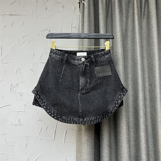 Váy ngắn denim cạp cao cỡ lớn vạt vòng cung màu đen thời trang nữ 2022