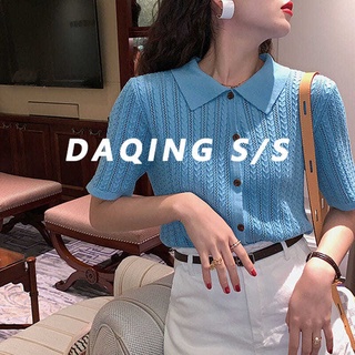 Áo Sweater Lụa Lạnh Cổ Polo Dáng Rộng Ngắn Tay Thời Trang Mùa Hè Dành Cho Nữ 2021