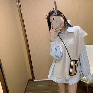 Set áo sơ mi dài tay cổ chữ V + áo len không tay phong cách Hàn Quốc cho nữ (có bán lẻ)