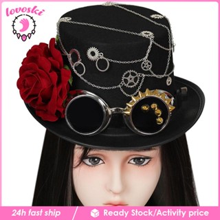 [Lovoski] Mũ Hóa Trang Steampunk Kèm Kính Bảo Hộ Họa Tiết Hoa Phong Cách Gothic Punk Fedoras