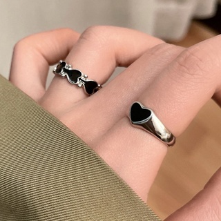 Bộ 2 Nhẫn Hình Trái Tim Màu Đen Phong Cách Gothic Cổ Điển Thời Trang Cho Nữ