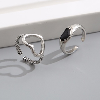 Set 2 Nhẫn Hở Mạ Bạc Hình Trái Tim Phong Cách Cổ Điển Màu Đen Có Thể Điều Chỉnh Làm Quà Tặng Cho Nữ