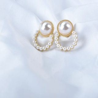Hoa Tai Dạng Kẹp Hình Tròn Đính Ngọc Trai Giả Màu Vàng Thời Trang Cho Nữ