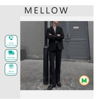 Quần ống loe nam nữ Mellow, quần tây nam nữ hàn quốc, ống loe nhẹ hack dáng vải vitex cao cấp - Black