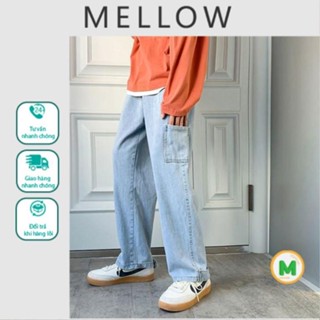 Quần jean nam nữ ống rộng ống suông Mellow, quần bò nam nữ suông ống rộng Baggy,dáng đứng vải jeans bò xanh fomt suông