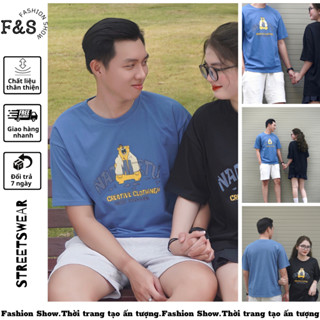 Áo thun GẤU NATU màu xanh dương unisex form rộng chất liệu cotton 100% - Áo phông F&S nam nữ, cặp đôi phong cách hàn quố