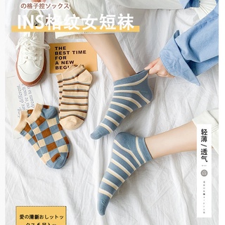 Tất thể thao họa tiết kẻ sọc mềm mại thoáng khí xinh xắn cho nữ