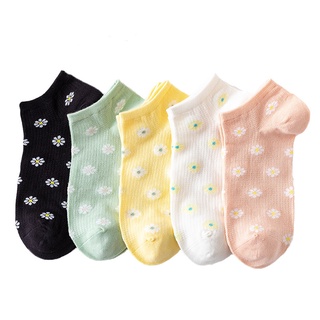 Tất cotton họa tiết hoa cúc thiết kế cổ thấp hợp thời trang mùa thu xinh xắn cho nữ