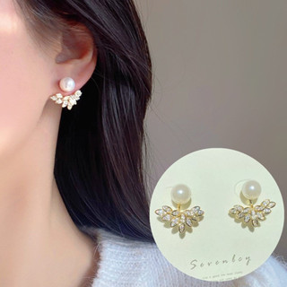 Bông Tai Hai Mặt Hình Đôi Cánh Đính Đá Và Ngọc Trai Thời Trang Nhật Hàn Độc