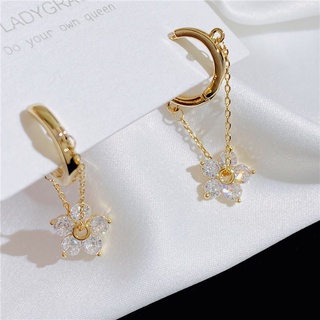 Bông Tai Dáng Dài Hình Hoa Đính Đá Zircon Thời Trang Sang Trọng Cho Nữ